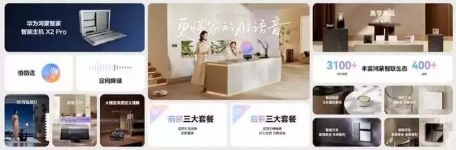 智能家居方面,华为鸿蒙之家升级,推出搭载旗舰芯片的智能主机X2 Pro、智能家居语音助手“小艺管家”,支持模糊语义理解、空间感知、悄悄话指令等AI控制方式。全屋智能推出三档前装组合(29999元至99999元)与入门级尝鲜方案(9999元),覆盖从毛坯房到已装修户型的改造需求,配合3000+鸿蒙智联生态品牌。