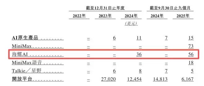 真正改变收入结构的,是2024年下半年崛起的视频生成产品海螺AI。截至2025年第三季度,Talkie与海螺AI分别贡献了1746万美元和1875万美元收入。