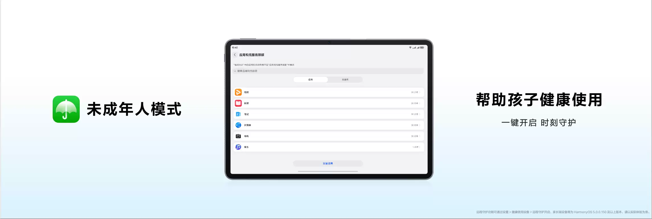 除了丰富的学习功能,华为MatePad 11.5还内置“未成年人模式”,辅助家长管理孩子的学习过程。在该模式下,家长可统一管理屏幕使用时间、应用权限与内容访问,定制适合孩子的网络环境;更能通过“远程守护”功能,在手机端实时查看设备位置与状态,并远程完成各项设置,帮助孩子在自律中平衡学习与娱乐,实现健康成长。