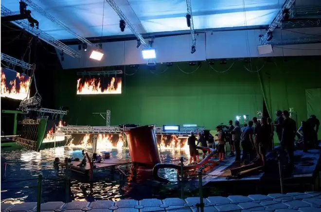 此外,影棚的灯光系统也不再仅用于照明,而是精确复现火山爆发时特有的光照特性——强烈的频闪光、穿透浓烟的漫射红光、以及因热空气扰动产生的光线扭曲。
