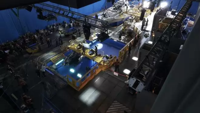 更关键的突破在于「双体积融合」技术,剧组建造了一个容量高达90万加仑的巨型水箱,在水面之上与之下分别部署两套独立的动作捕捉系统,两者之间仅间隔一英寸。