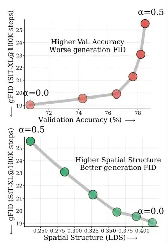 也就是说,「更懂这是什么」确实在发生;但与此同时,模型也失去生成所依赖的空间结构。
