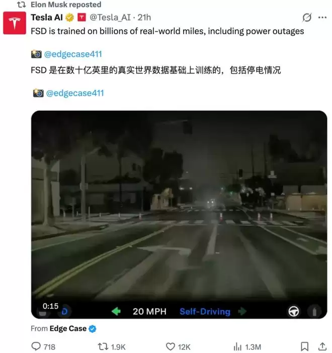 相比之下,特斯拉主张依赖摄像头和神经网络的“纯视觉”方案,强调模仿人类驾驶员的视觉处理能力,不依赖高精地图和外部基础设施信号。支持特斯拉的分析人士指出,在同样的停电环境下,开启FSD(完全自动驾驶)功能的特斯拉车辆仍能继续行驶,因为它更多依赖实时感知而非预设规则。