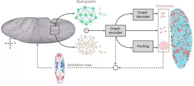 研究团队使用光片显微镜(light-sheet microscopy)拍摄的四维全胚胎数据进行训练和测试,这些数据来自密歇根大学,具有亚微米级分辨率和较高的帧率,每个胚胎包含约 5,000 个被标注边界和细胞核的细胞,这种数据在发育生物学领域相当稀缺。