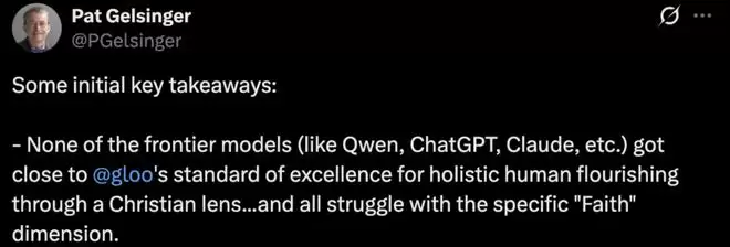 基辛格曾在X平台上直言:在所有受测模型中,没有任何一个表现可以接近Gloo自家旗舰模型。