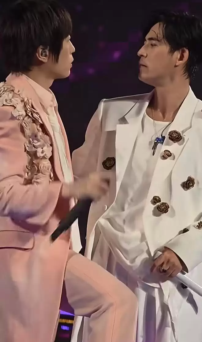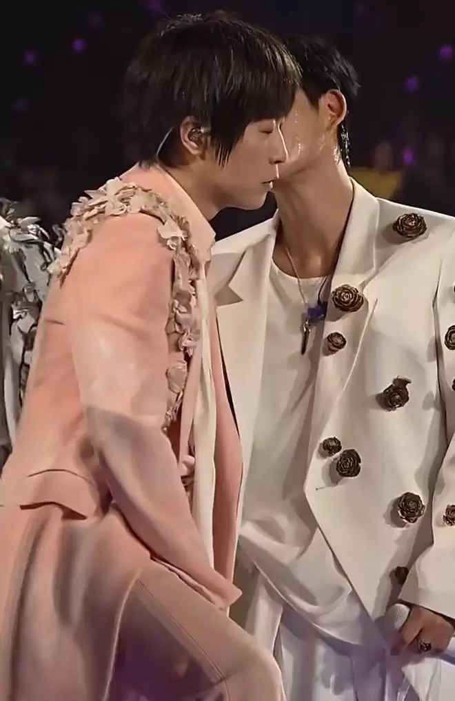 在周渝民和阿信深情对望时,吴建豪突然跑到阿信身边,猝不及防地朝着阿信脸颊狠狠亲了一口,引发歌迷阵阵尖叫。