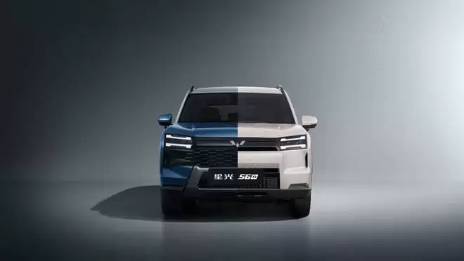 在外观设计上,五菱星光560有着硬朗的线条设计,前脸也是蜂窝状设计,并搭配壮实的前保险杠设计,而两侧LED光源以双横线设计更像时尚化的点缀。另据悉,围绕新车动力的不同,其前脸设计也会有一些差异,比如燃油版与插混版采用的就是黑色网状格栅,搭配棱角分明的前保险杠,而纯电版则以封闭式前脸+贯穿式灯带凸显新能源身份。