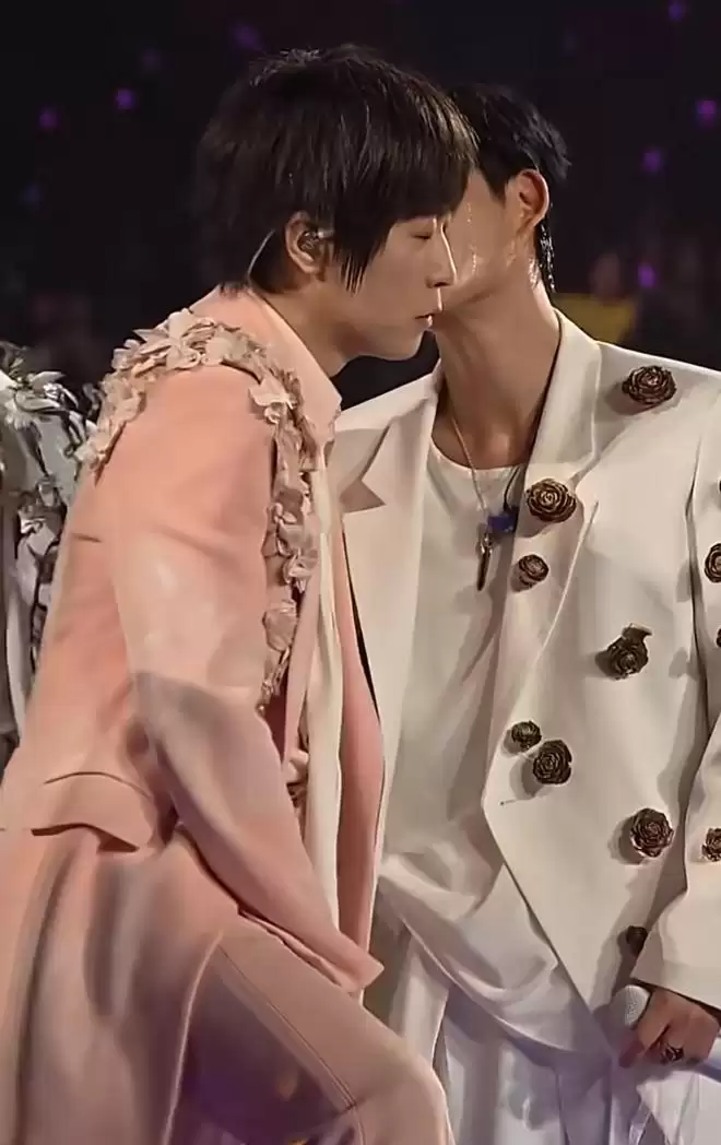从阿信分享的片段可以看到,他主动向身旁的周渝民示意索吻,周渝民心领神会,立刻亲吻了阿信的脸颊。一旁的吴建豪见此情景也露出笑容,三人同框时现场粉丝的尖叫声简直要掀翻屋顶。