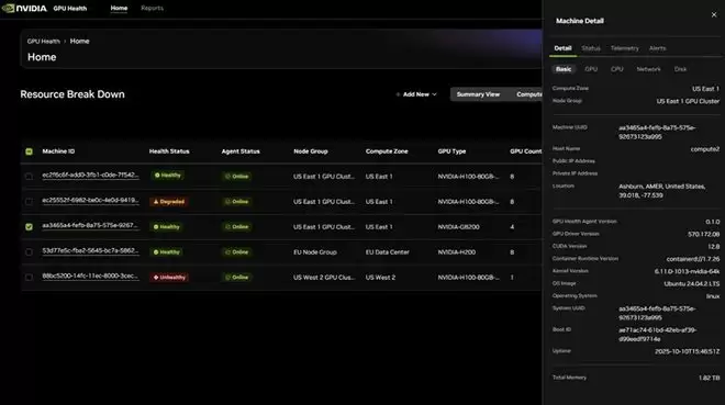 根据英伟达的博客文章,这项全新的软件解决方案旨在确保AI数据中心以最佳状态运行。它向云合作伙伴和企业提供了洞察仪表板,能够帮助数据中心运营商监测整个AI GPU集群的运行状况,从而提升整个计算基础设施中GPU的正常运行时间。