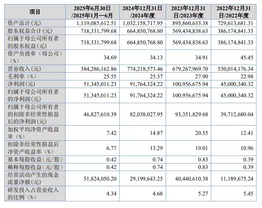 报告期内(2022年至2025年上半年),新恒泰的营业收入分别为5.3亿元、6.79亿元、7.74亿元及3.84亿元;净利润则依次为4500.03万元、1.01亿元、9176.43万元和5134.5万元。