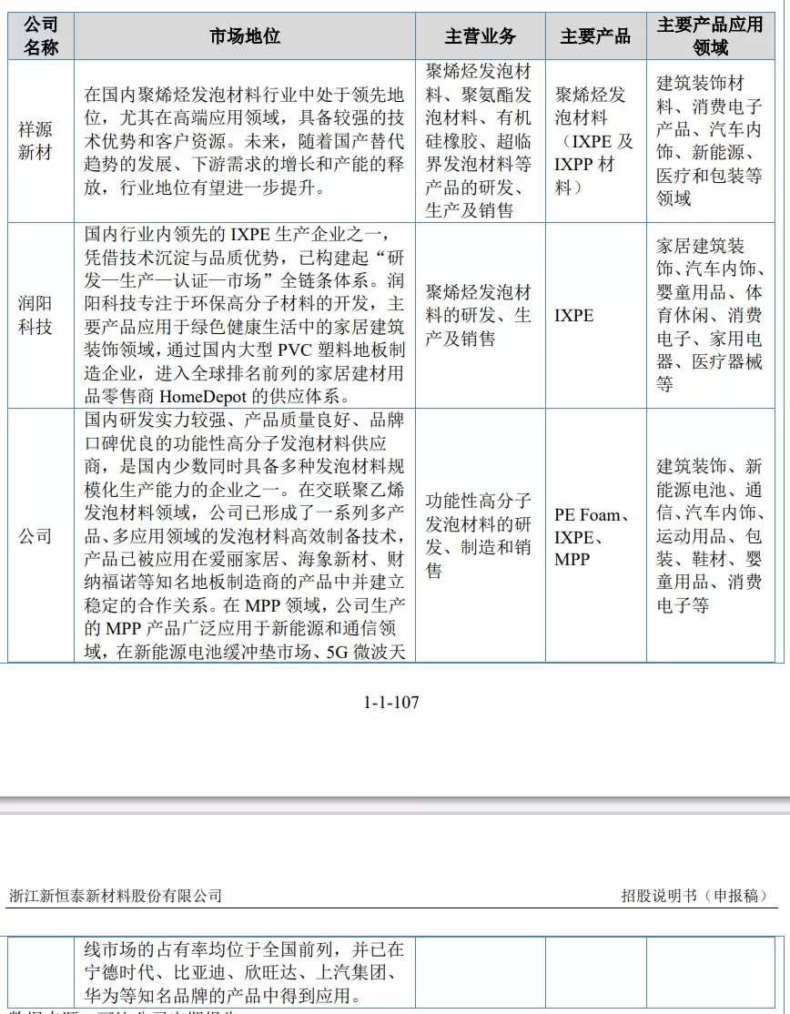 新恒泰专注于功能性高分子发泡材料的研发、制造与销售,经过十余年发展,现已成为国内具备多种发泡材料规模化生产能力的知名供应商。公司主要产品线丰富,包括化学交联聚乙烯发泡材料(PEFoam)、电子辐照交联聚乙烯发泡材料(IXPE)、聚丙烯微孔发泡材料(MPP),同时也涵盖聚氨酯微孔发泡材料、非发泡PVC耐磨层等。