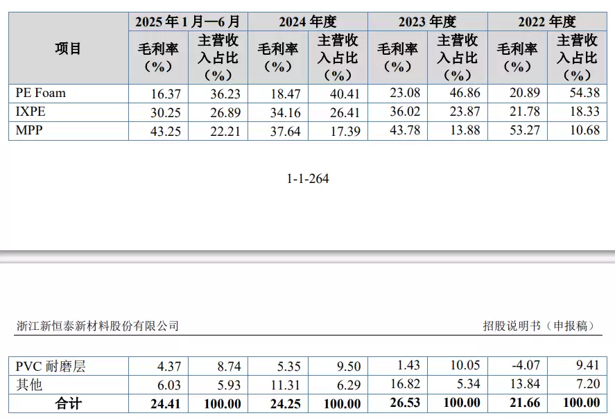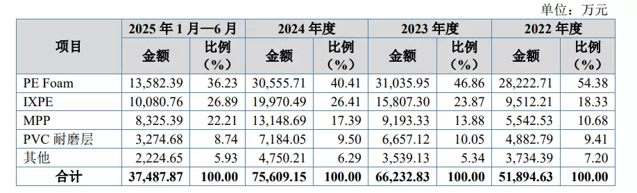 公司核心产品包括PEFoam、IXPE、MPP及PVC耐磨层等。报告期内,各类主要产品的销售收入整体均呈现上升态势。