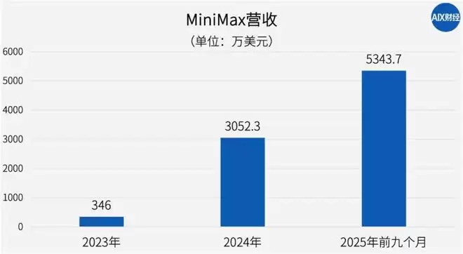 先来看营收。MiniMax近几年收入增长迅猛,2024年的总收入仅为346万美元,2024年大幅增至3052.3万美元,同比增长782.1%。2025年前九个月进一步增长至5343.7万美元,超去年全年,同比增长174.8%。从结果看,其多线布局跑出了规模。