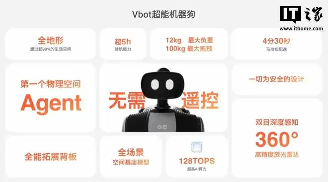 IT之家 12 月 23 日消息,维他动力 Vbot 今日发布了一款超能机器狗“大头 BoBo”,宣称是全球首款无需遥控的智能机器狗。