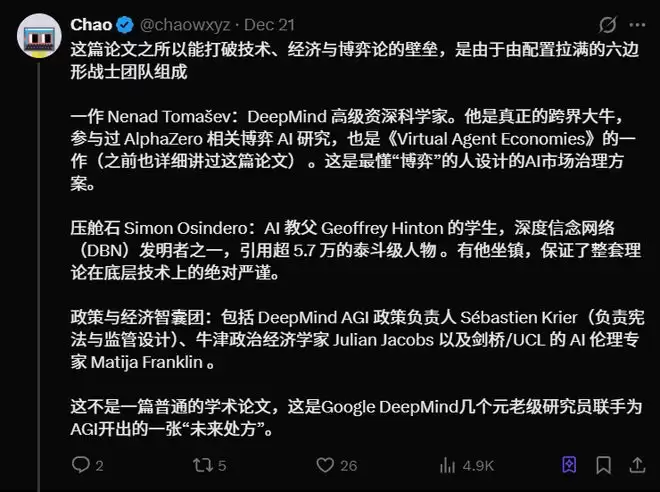 2025年12月18日,Google DeepMind在arXiv发布了一篇重磅论文《Distributional AGI Safety》。这篇论文提出了一个颠覆性观点:我们可能一直在为错误的敌人做准备。
