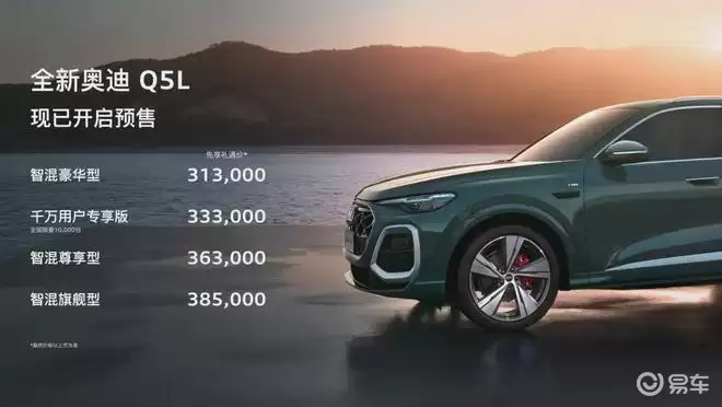 近日,一汽奥迪正式公布全新奥迪Q5L开启预售,起售价为31.3万元。本次预售共推出4款车型,其中千万用户专享版全国限量1万台。新车基于全新的PPC豪华燃油车平台打造,在外观、内饰、智能化配置及动力系统方面均进行了全面升级,预计将为用户带来更优质的驾乘体验。