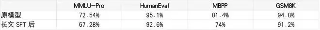 更重要的是,这种压缩并非以牺牲通用能力为代价。在多项短文本(通用)Benchmark 上,采用自蒸馏范式训练后的模型并未出现性能衰减,原有对话、推理和代码理解等能力都得到了良好保留。