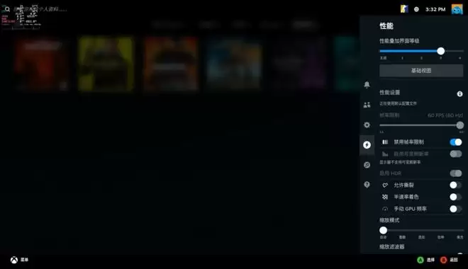 等SteamOS启动完毕,登录自己的账号即可使用。在SteamOS下,呼出控制面板菜单可以通过XBOX标准手柄同时按下“西瓜键”+ A来实现,在这里我们就可以开启系统监控,查看内存占用量。
