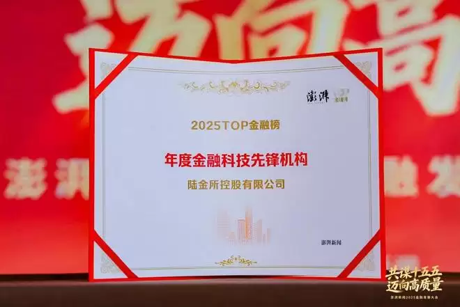 近日,由上海报业集团旗下澎湃新闻主办的“2025TOP金融榜”评选结果揭晓。陆控 (NYSE LU,06623.HK)凭借其在金融科技与智能风控领域的系统性创新与实践成效,获评为“年度金融科技先锋机构”。