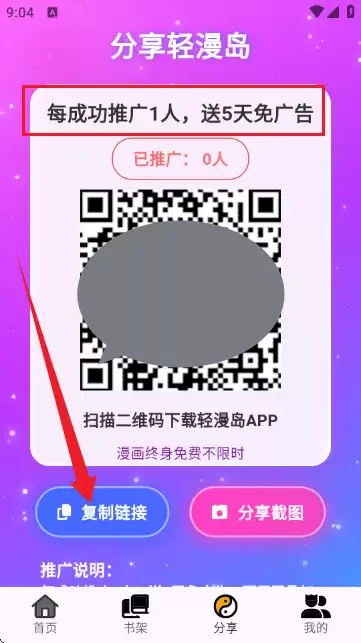 轻漫岛app怎么免广告,用户在本站下载安装好软件,点击手机桌面图标,打开app,打开APP,进入到【我的】界面中,找到【免广告特权】,点击分享推广即可。轻漫岛漫画app免广告特权获