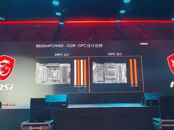 最后微星专业工程师、全球主板超频冠军TOPPC林源铭登台讲解了微星超频产品的设计理念,比如除了极限的专业超频产品,微星也提出了MPOWER等在常温下就可以简单超频的产品,林大还详细解释了B850MPOWER等超频主板要采用双槽内存设计的原因。