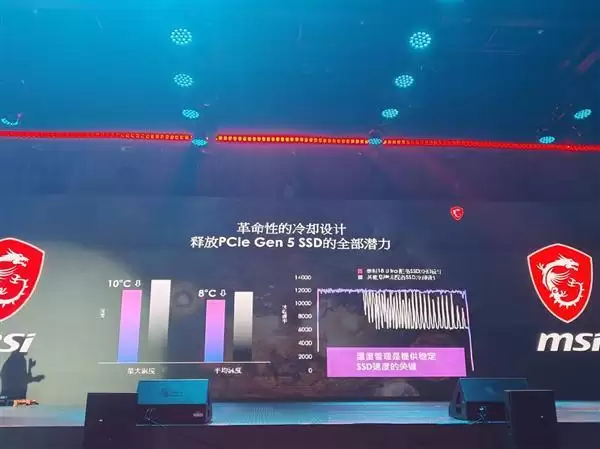 微星着重介绍了泰坦18 Ultra AI 2025,这款笔记本采用了Intel酷睿Ultra 9 285HX+ RTX5080的硬件组合,整机可以实现270W的性能释放,同时为PCIe5.0 SSD搭配了专用冷却铜管,读取速度最高可以达到12GB/s,平均温度相比其他品牌低了8摄氏度。