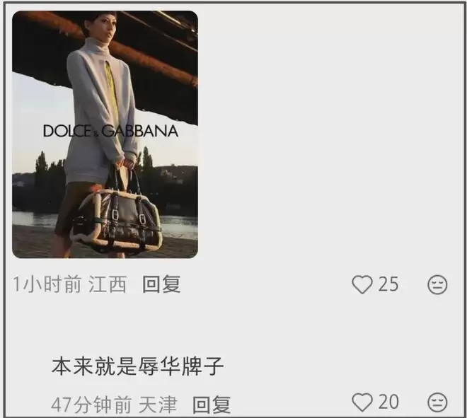 杜嘉班纳就是D&G,2018年,杜嘉班纳发布了辱(ru)华(hua)广告宣传片,品牌设计师不仅没有第一时间道歉,还持续性针对我们,堪称近年性质最为恶劣的品牌争议之一。