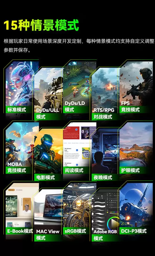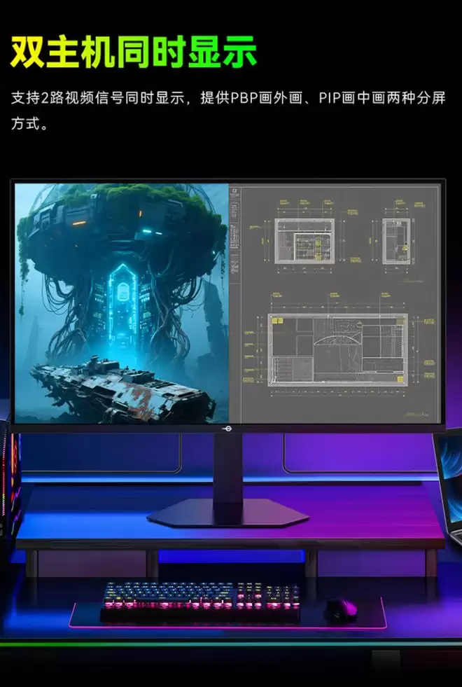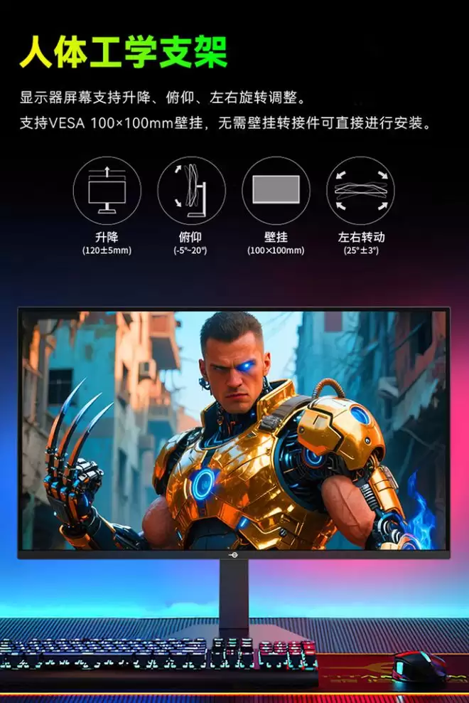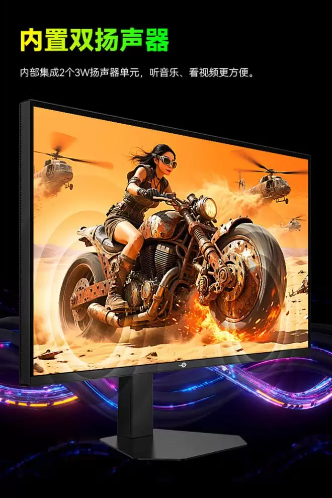 此外,这款显示器还拥有 15 种情景模式,覆盖日常游戏场景,集成 3W 双扬声器单元,不用外接音箱也能让电脑出声,背部配备 RGB 电竞背光灯,可为玩家营造游戏氛围,OSD 菜单采用摇杆操控,也可安装驱动后使用鼠标操控。