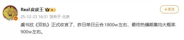但是看了她的剧播成绩之后差点笑出声来,73个热搜加持却只交出单日云合1800万、热播期集均大概率900万的成绩。