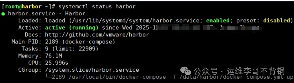 之前我已将 Harbor 配置为 systemd 服务,实现开机自启,方便日常维护。