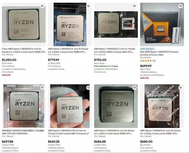 值得注意的是,在高端与新平台备受关注的同时,旧平台与老款型号的需求也被再次推高。据报道,Ryzen 7 5800X3D近期在eBay上的成交价格最高达到800美元,甚至超过了当前全新Ryzen 7 9800X3D的售价。其背后的原因在于,5800X3D所对应的AM4平台是AMD唯一仍支持DDR4内存的平台。在DDR5价格持续高企的背景下,不少玩家为了控制整机成本,宁愿选择在旧平台上升级高端处理器,而非投入更多预算构建全新的DDR5平台。