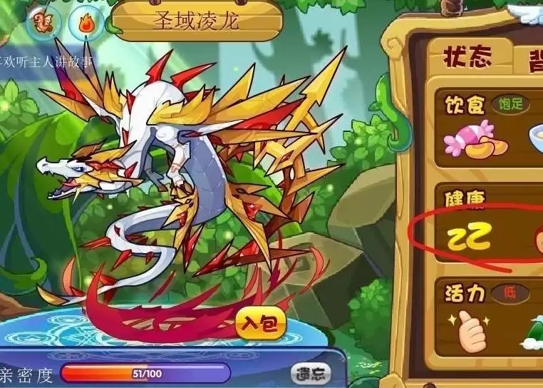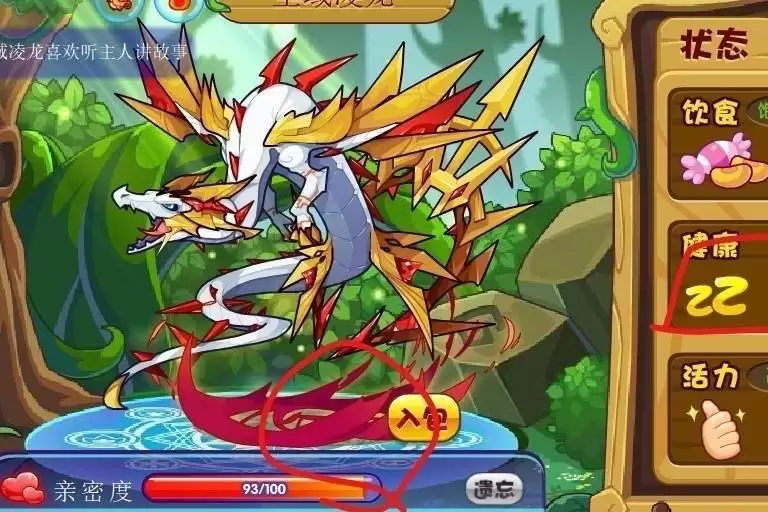 1、首先将我们需要培养的宠物放入乐园,图示为圣域凌龙(魔攻宠)。