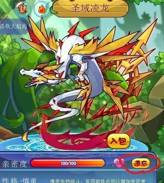 3、点击宠物,如果之前亲密度已满,则需要点击“遗忘”从新培养,如为培养或亲密度很低则无需此操作。