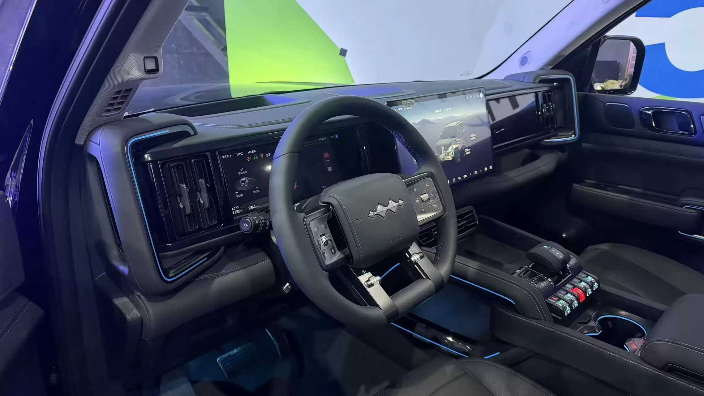 安全性能始终是硬派越野的重中之重。豹5长续航版采用高强度钢占比61%、热成型钢占比19%的车身结构,车架100%由高强度钢打造,整车扭转刚度较传统燃油越野架构提升44%。车辆具备790毫米涉水深度和13吨车顶抗压能力,全系标配11个安全气囊(含远端气囊),电池包采用5层核心防护结构。高配车型搭载的“天神之眼”或华为乾崑智驾系统,与被动安全设计形成双重防护,全方位守护出行安全。