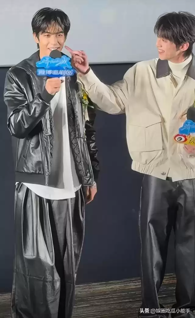 赵今麦穿着黑色吊带皮裙,头发上还戴了发饰,就是看着不怎么好看,宋威龙也是上身一套皮衣,松松垮垮的,再加上油头造型,看着略显油腻,两人的造型都挺一般的。