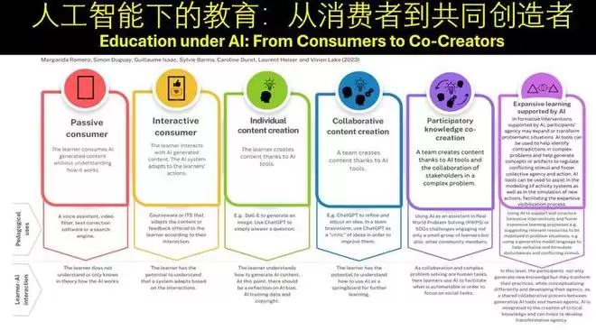 5、人工智能时代的教育,应从“知识传输”,转为培养学生的能力、好奇心、学习主动性和共创意识。