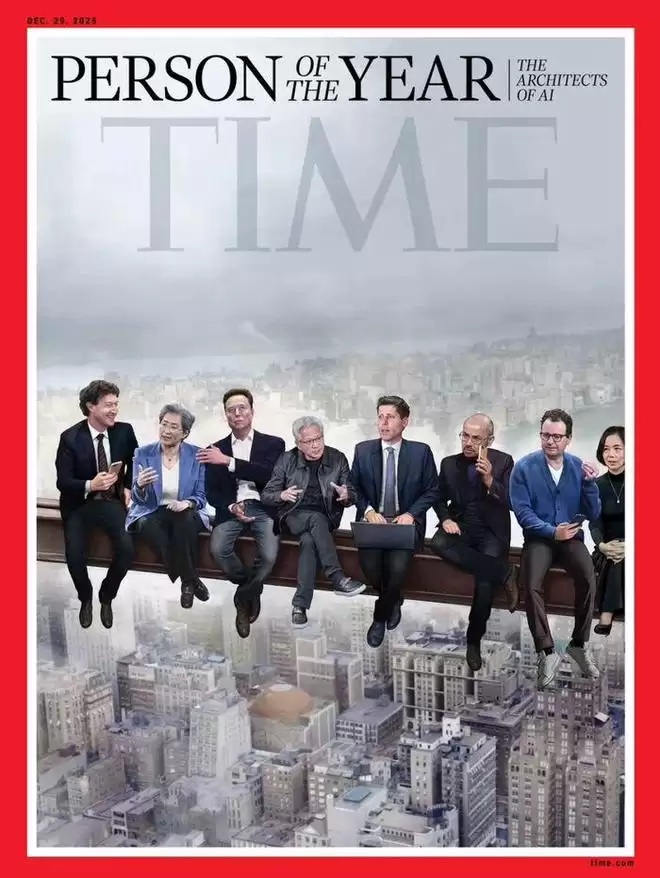 今年《时代》周刊的年度人物是8位“AI缔造者”(The Architects of AI)——特斯拉CEO马斯克、英伟达CEO黄仁勋、OpenAI CEO萨姆·奥尔特曼、Meta CEO扎克伯格、AMD CEO苏姿丰、谷歌DeepMind CEO杰米斯·哈萨比斯、人工智能公司Anthropic CEO达里奥·阿莫迪、被称为“AI教母”的斯坦福大学教授李飞飞。