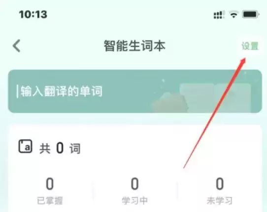 进入生词本页面后,请注意屏幕右上角,点击那里的【设置】图标。