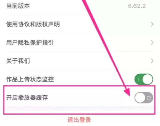 第三步:在设置页面中,你就能看到【开启播放器缓存】的选项了,轻触开关将其启用即可。