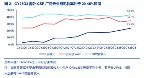 这也解释了为何海外三大云厂商的云业务毛利率差异显著:2025年三季度,谷歌云毛利率为43.3%,微软智能云为34.6%,而亚马逊AWS仅为23.7%。随着AI大模型云收入占比持续提升,硬件调度能力对毛利率的影响将愈发关键。