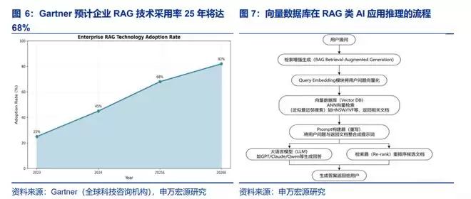 数据层面,向量数据库已成刚需,Gartner预测2025年企业RAG技术采用率将达68%。海外数据厂商如MongoDB在2024年二季度收入增速出现明显拐点,验证了这一趋势。