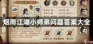 在《烟雨江湖》这款武侠游戏中,与门派小师弟的互动问答是许多玩家津津乐趣的环节。不少玩家都希望能掌握这些问题的答案,从而更深入地体验游戏的剧情魅力与江湖特色。