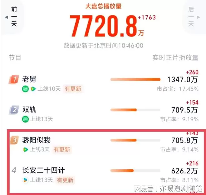 不愧是顾漫的作品,《骄阳似我》上线才3天,播放量就突破了700万,直接碾压了《长安二十四计》。