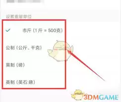 在单位设置页面中,您会看到可供选择的单位选项,一般会包括“公斤”和“市斤”。如果您当前显示的是公斤,想要改为市斤,只需点击选择“市斤”这个选项即可。有些App可能还会在页面底部有一个“确认”或“保存”按钮,点击它来完成单位更改的最后一步操作。更改完成后,退出设置页面,回到主界面,您会发现所有的数据展示单位都已经从公斤变成了市斤。