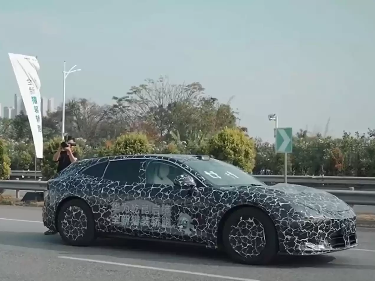 从目前曝光的实车情况来看,这款猎装轿跑亮点颇多。尺寸方面,它丝毫不逊色于001车型。引擎盖两侧的灯组设计独特,有明显的隆起,增添了几分运动感。从前45度视角观察,其整体造型与001也有相似之处。当空气悬架降至最低时,车辆的姿态相当不错,展现出一种蓄势待发的战斗气息。