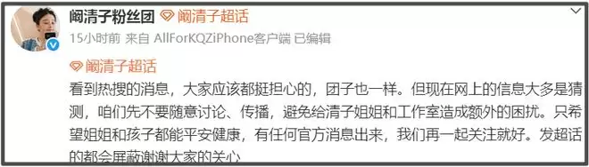 阚清子生育相关爆料话题持续引爆热搜,当事人对此尚未回应,阚清子后援会发文呼吁大家冷静,不要随意讨论、传播各种猜测爆料,以免给阚清子造成额外的困扰,并祈祷阚清子和孩子健康,一起等待最新消息。