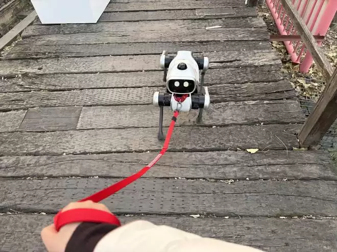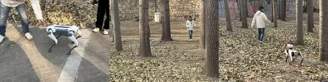 12月的北京,气温已逼近零度。在朝阳区的一处公园内,地面被厚厚一层落叶覆盖,脚踩上去会发出细碎而干脆的声响。记者在公园内缓慢前行,身后是正在进行跟随测试的机器狗。
