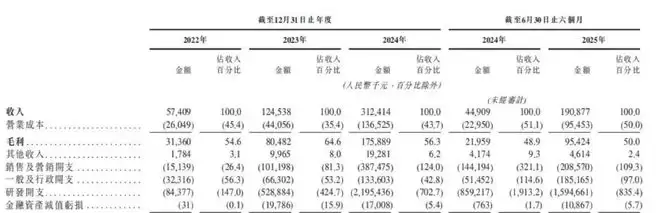 招股书显示,2024年至2024年,智谱营收分别为5740万元、1.25亿元和3.12亿元,年均复合增长率超130%;2025年上半年营收进一步增至1.91亿元,较上年同期的4490万元同比激增325.39%。