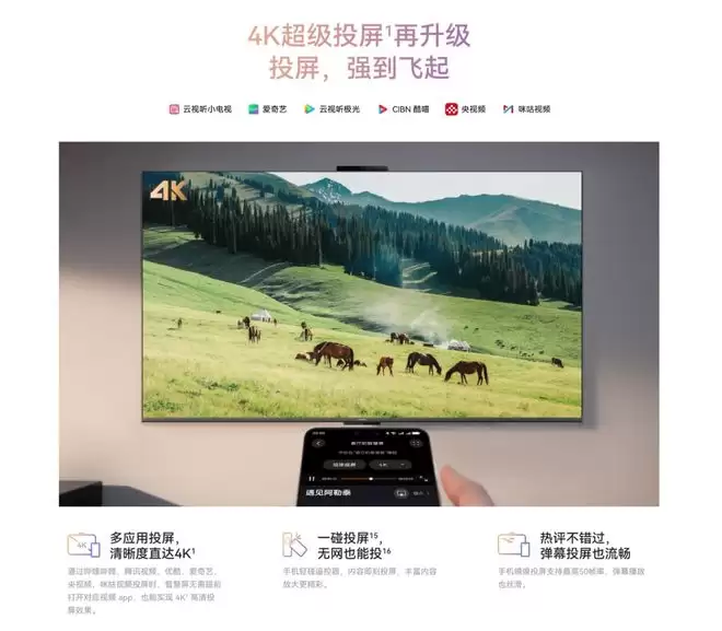 在投屏体验上,华为 Vision 智慧屏 5 SE 直击长期用户痛点。其搭载的 4K 超级投屏功能极为便捷 —— 只要手机端拥有对应平台会员,无需在电视端安装该视频 APP,也无需电视端额外会员,即可将最高 4K 超清画质投射到智慧屏上。此外,一碰投屏功能让华为手机轻触遥控器即可瞬间完成画面流转,彻底告别繁琐的操作步骤。