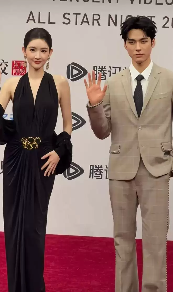 第一套黑色礼服,小露性感,肤白貌美,身材和身段都很出色,这一刻,她和龚俊一起出场,原来帅哥我都没有看到,目光都停留在美人身上。